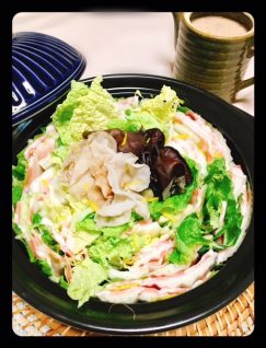 【薬膳レシピ】豚肉と白菜のミルフィーユ鍋 胡桃入り味噌出汁~冬の寒さの養生~
